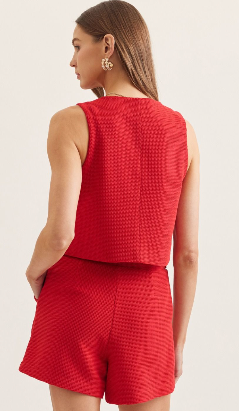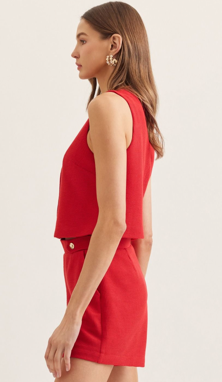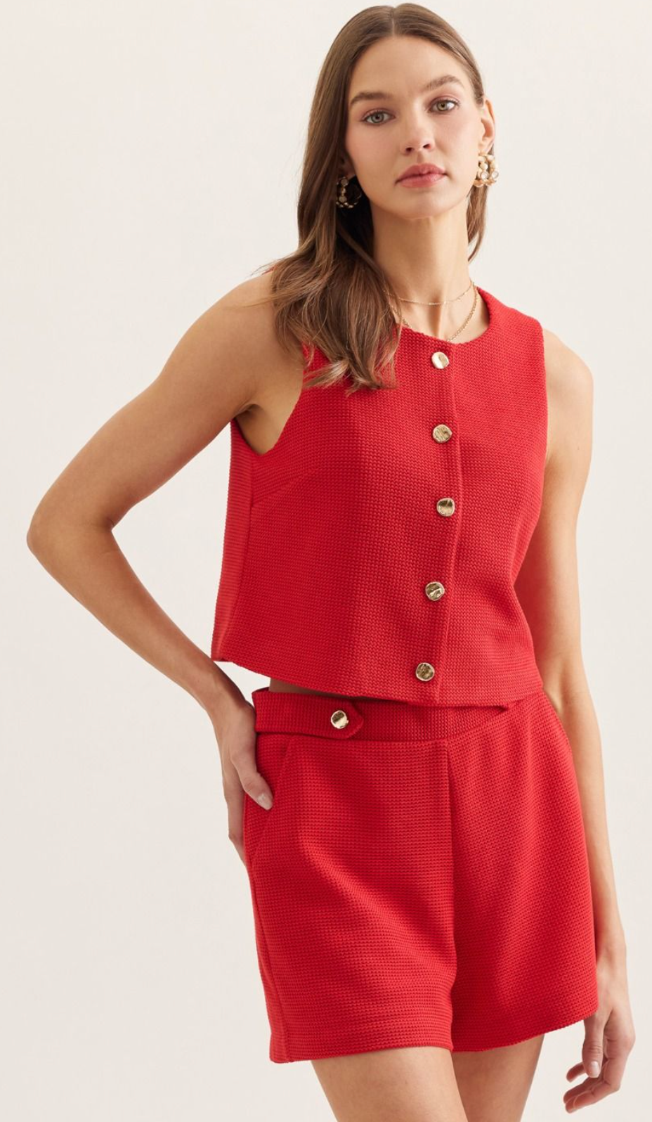 Sleeveless Red Knit Button Up Top