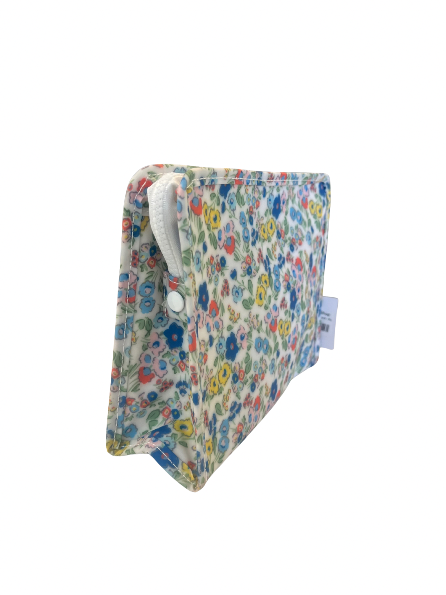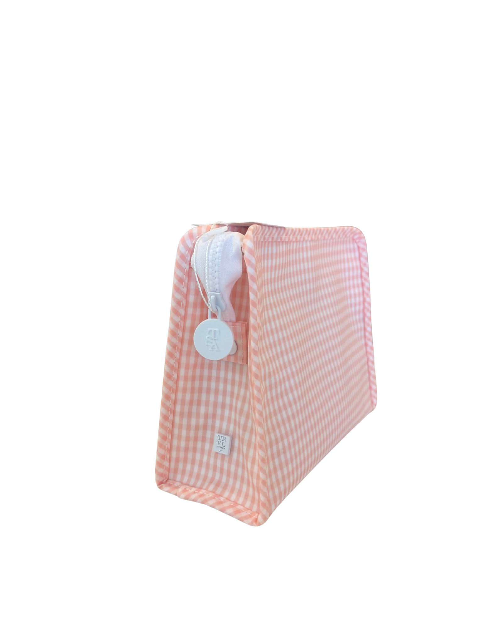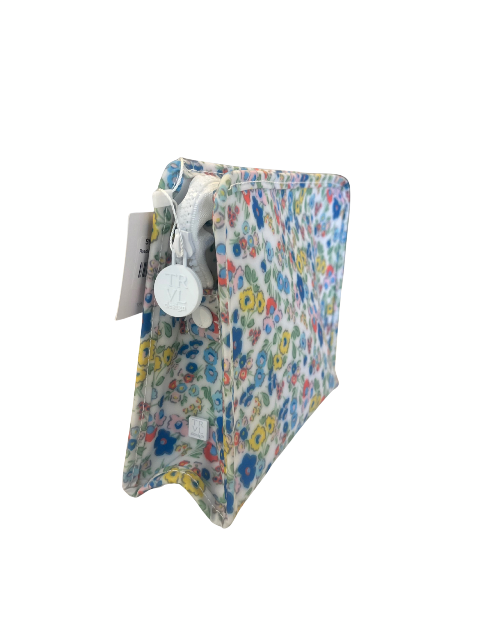 Our best-selling Roadies are our BFFs in the pouch world! This print is available in 2 sizes, our Large Roadie is made with a thin Eco-friendly matte coating, an inside slip pocket and exterior snap open zip tabs for a wider opening and an easier access. * Size: 9"l x 7.25"h x 3"d * Coated Cotton * Lined in poly twill * Chunky White Zipper with snap closure * Water and stain resistant & wipeable inside and out * Care: wipe with a clean damp cloth * Made with our Signature* Environmentally Friendly PVC-free, non-chlorinate coating that is soft to the touch, waterproof, and biodegradable. This fabric has been specifically developed by TRVL as an environmentally friendly alternative for our TRVL Families!