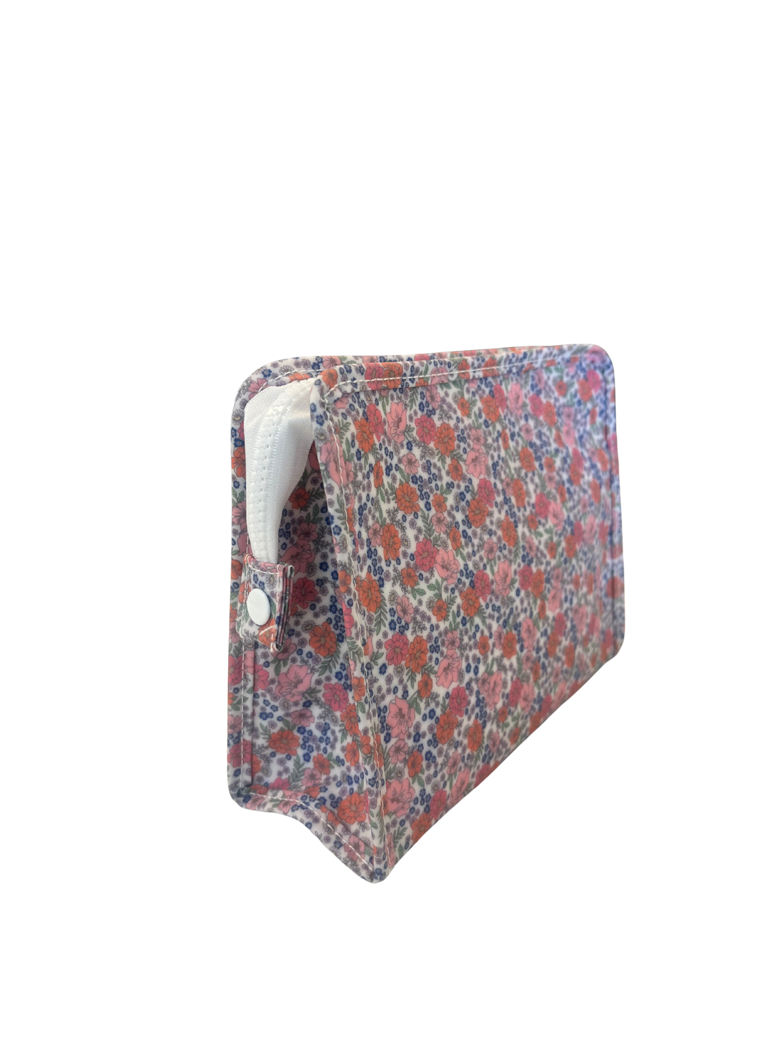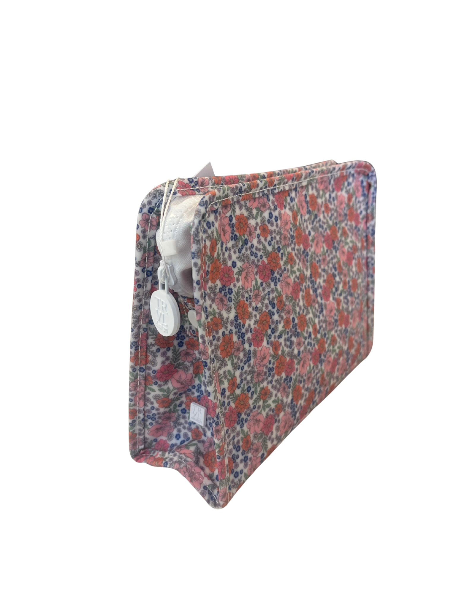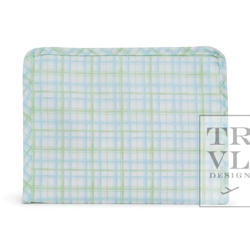 Our best-selling Roadies are our BFFs in the pouch world! This print is available in 2 sizes, our Large Roadie is made with a thin Eco-friendly matte coating, an inside slip pocket and exterior snap open zip tabs for a wider opening and an easier access. * Size: 9"l x 7.25"h x 3"d * Coated Cotton * Lined in poly twill * Chunky White Zipper with snap closure * Water and stain resistant & wipeable inside and out * Care: wipe with a clean damp cloth * Made with our Signature* Environmentally Friendly PVC-free, non-chlorinate coating that is soft to the touch, waterproof, and biodegradable. This fabric has been specifically developed by TRVL as an environmentally friendly alternative for our TRVL Families!