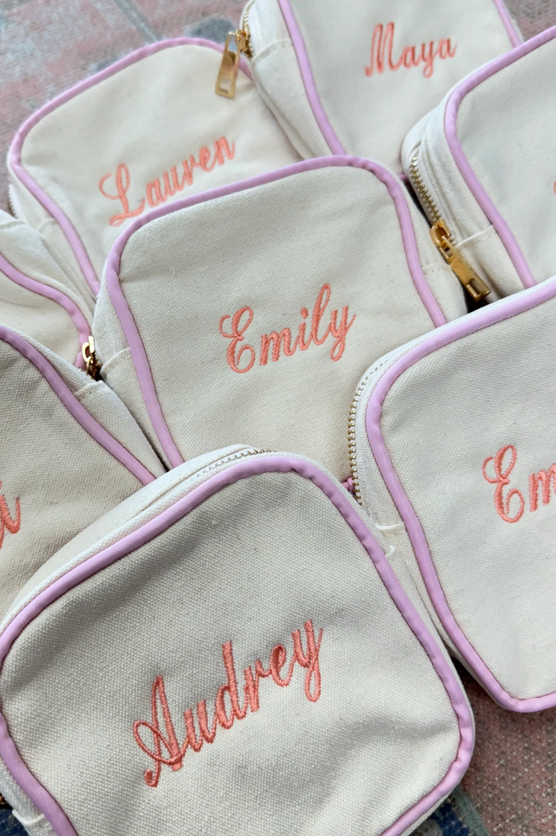 Our Canvas Makeup Bag, the ultimate fashionable accessory for the modern makeup enthusiast! Designed with a blend of style and functionality, this makeup bag is a must-have for anyone who loves to stay organized in the most stylish way possible. Not only is this makeup bag a stylish addition to your daily routine, but it also doubles as a versatile travel companion. It's durable construction and compact design makes it the perfect on-the-go storage solution.