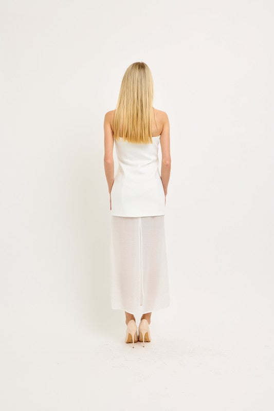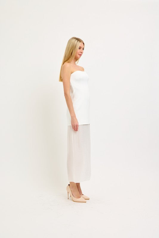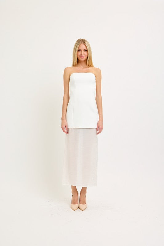 CONTRAST SKIRT DETAIL STRAPLESS NECKLINE COLUMN MAXI DRESS