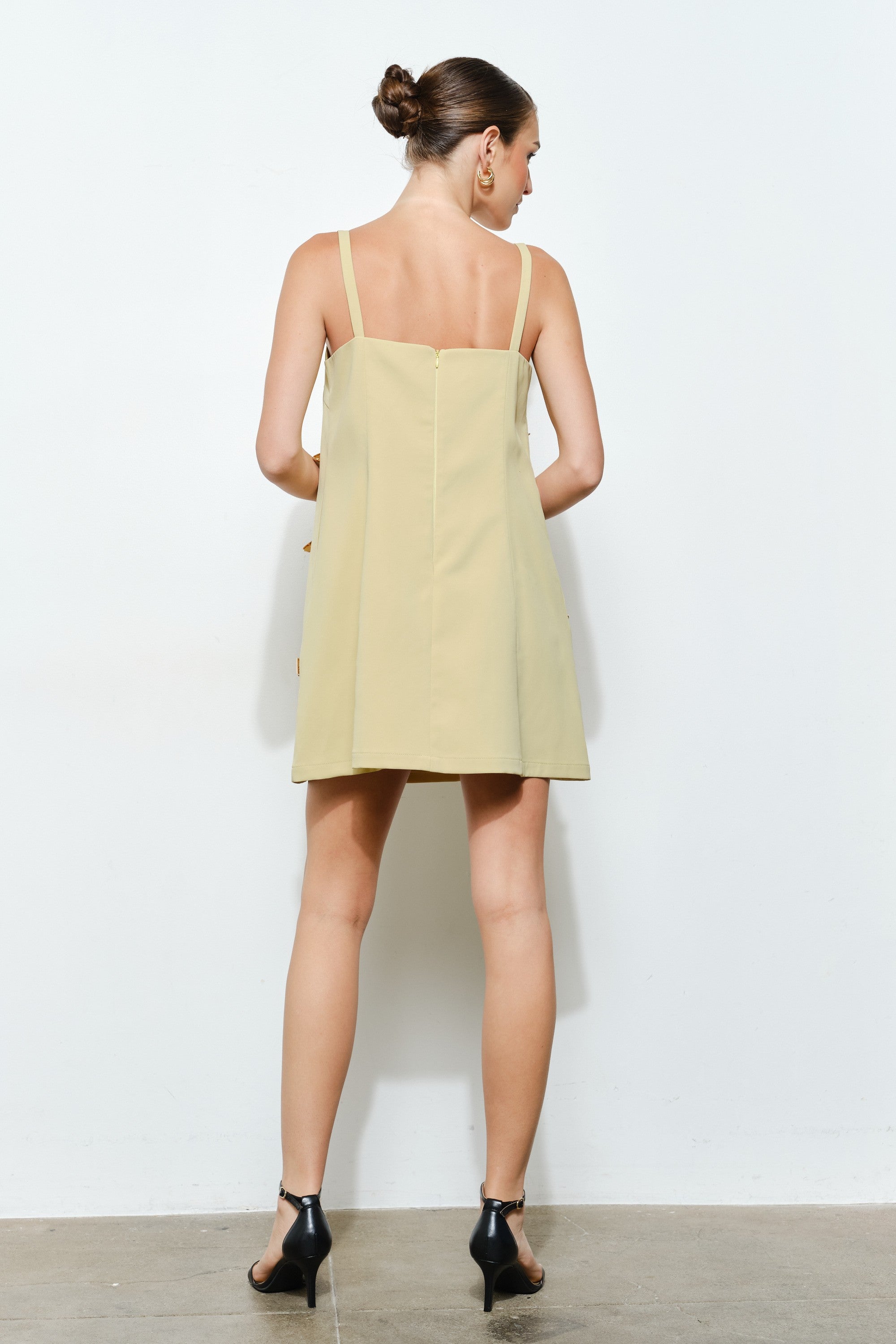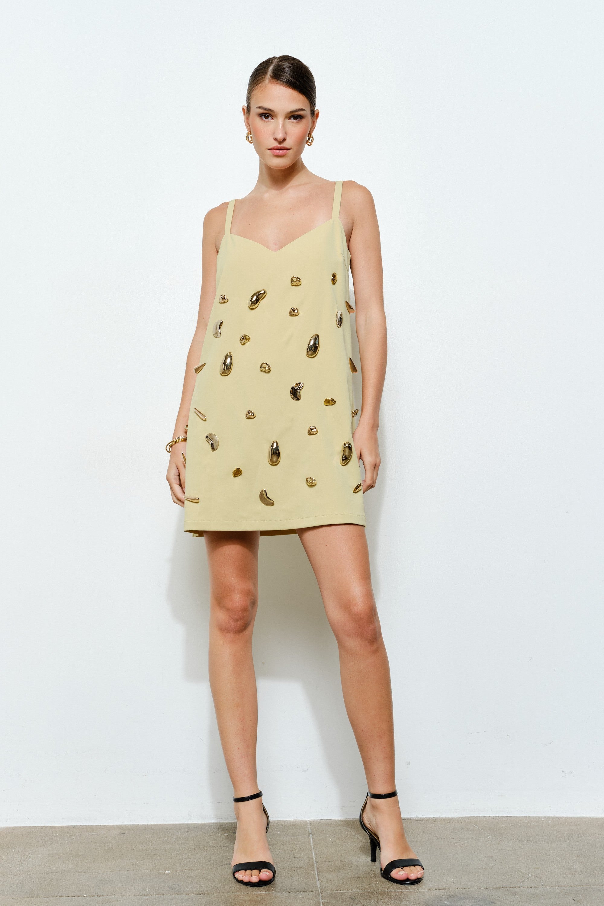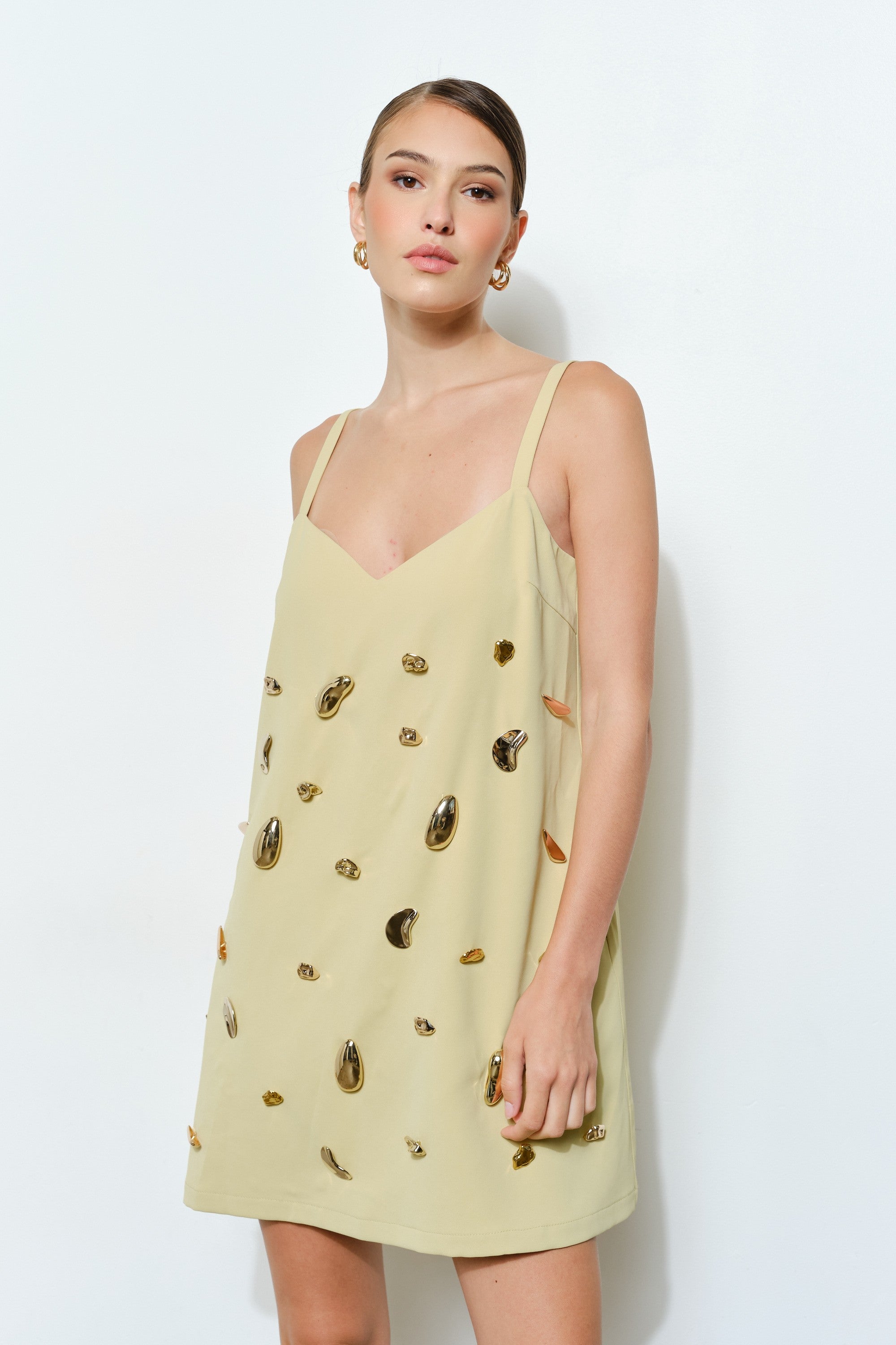 -Sleek A-line mini dress with slim shoulder straps and a soft V-neckline