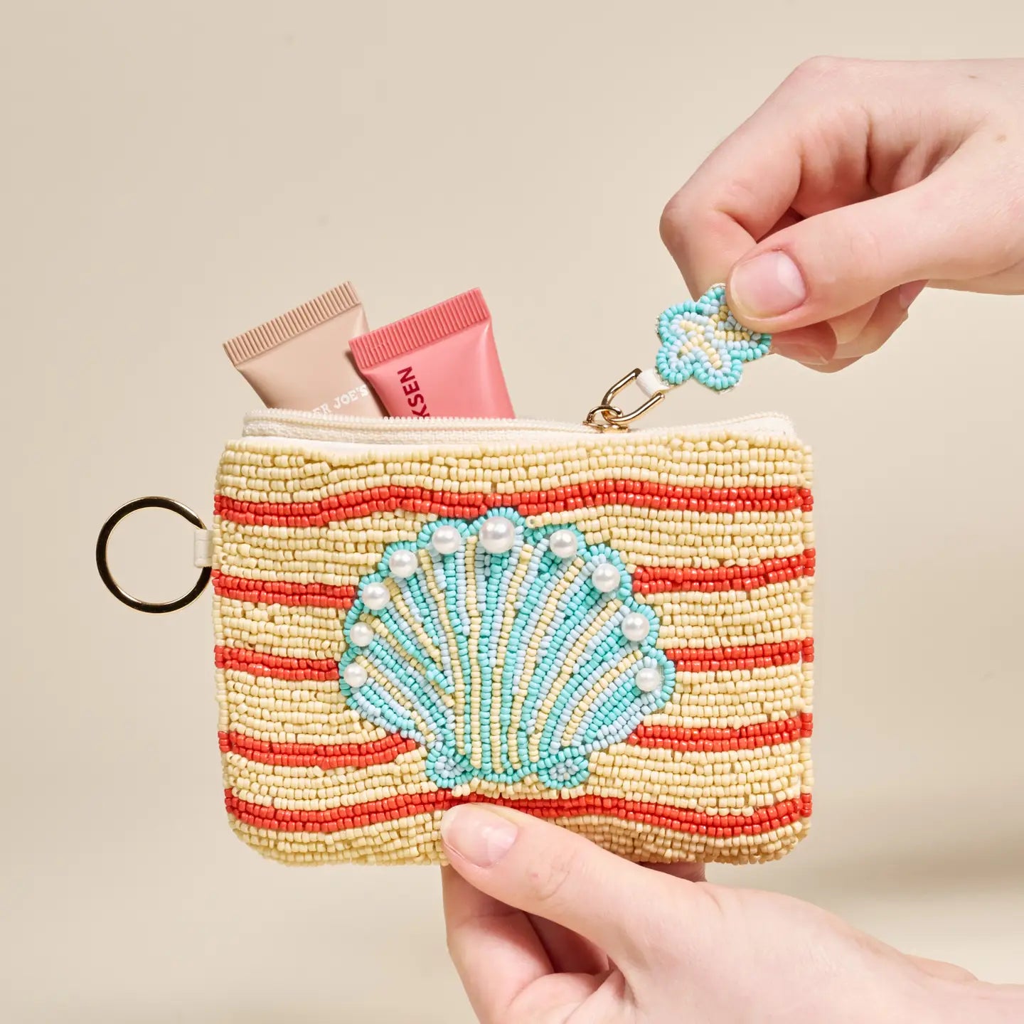 Thoughtfully created to merchandise beautifully with our Fun in the Sun: Endless Summer Collection This handcrafted beaded pouch feels like a tiny piece of artistry you can carry with you. Each bead is placed with care to create designs that feel lively, expressive, and full of personality. Its compact size makes it perfect for storing small essentials while the detailed front adds a thoughtful, eye-catching touch. It’s the type of accessory that draws compliments and sparks joy every time you reach for it. Hand-beaded in India Compact size perfect for lip gloss, cash, or small essentials Features a coordinated beaded zipper pull charm Fully lined for added durability and structure Measures 5” x 3.75”