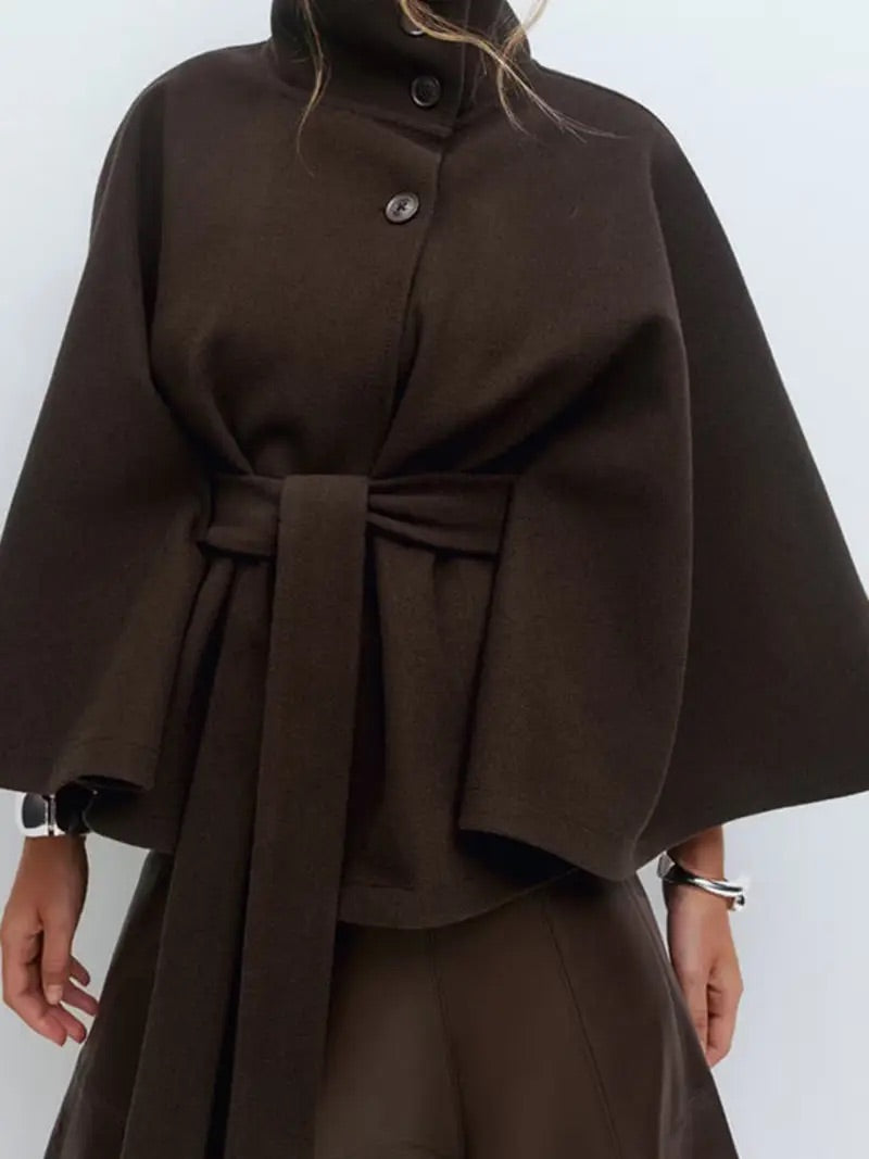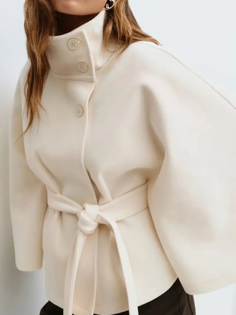 Your new go-to outerwear features a stylish high-collar and versatile belted waist. Effortlessly transitions from casual to chic, making it perfect for any occasion. Fabric: 100% polyester