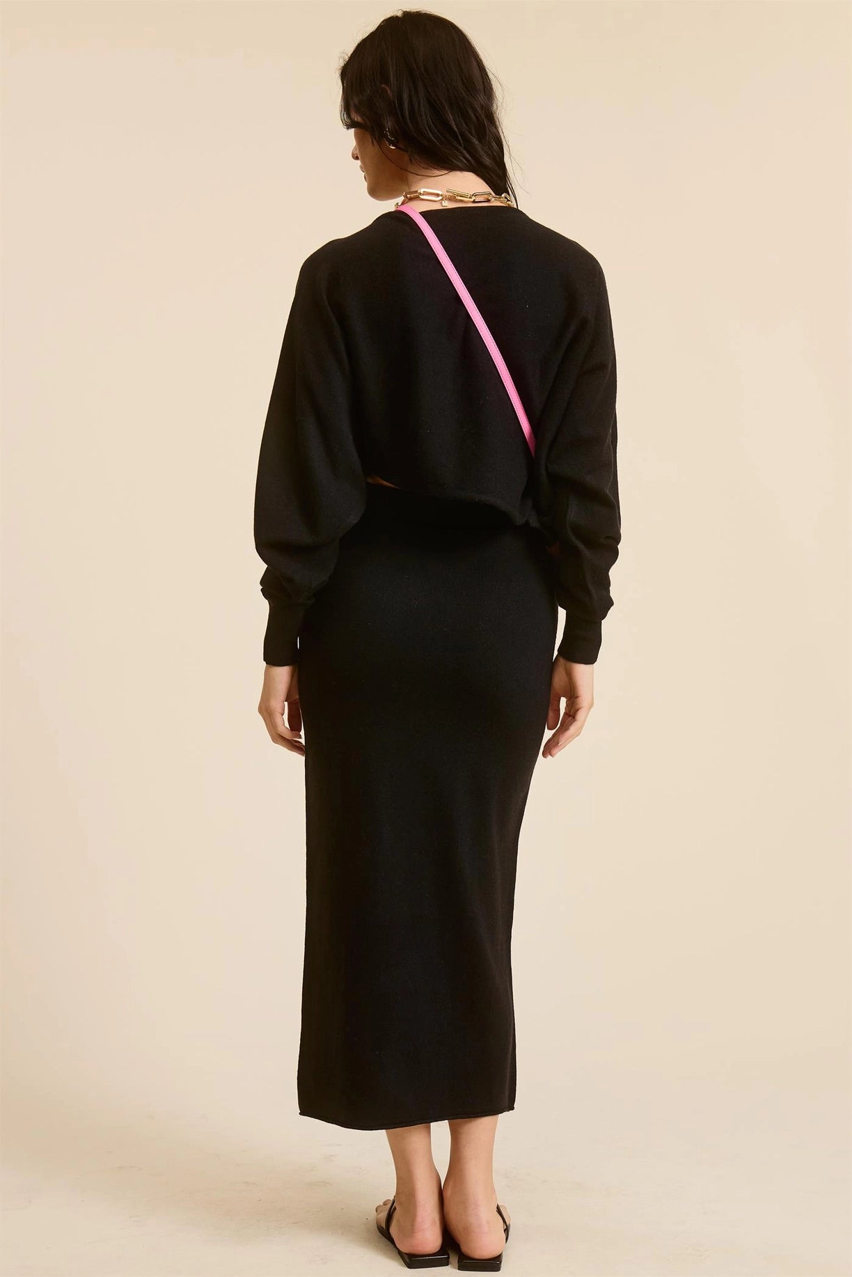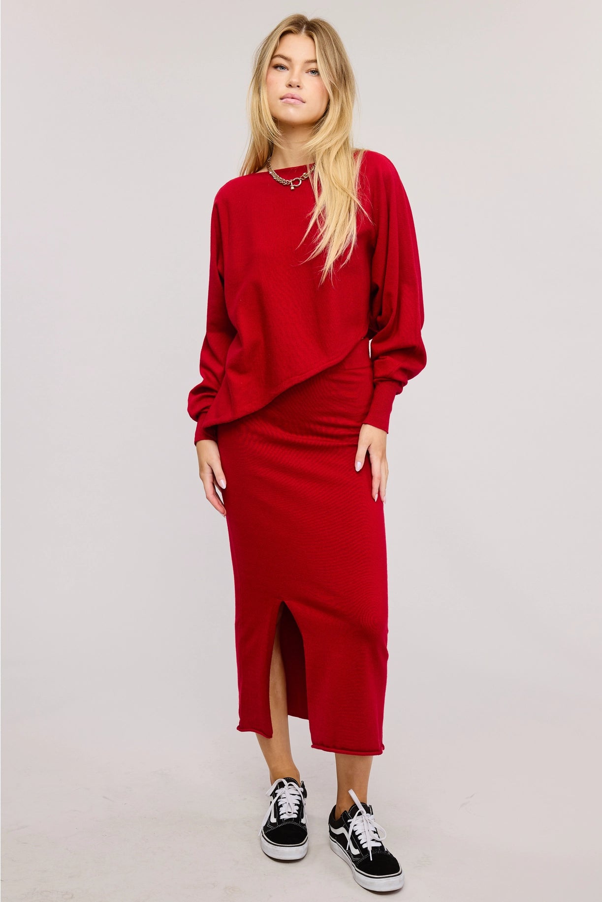 Skirt features a high waist with a trendy side slit that could be worn both ways.