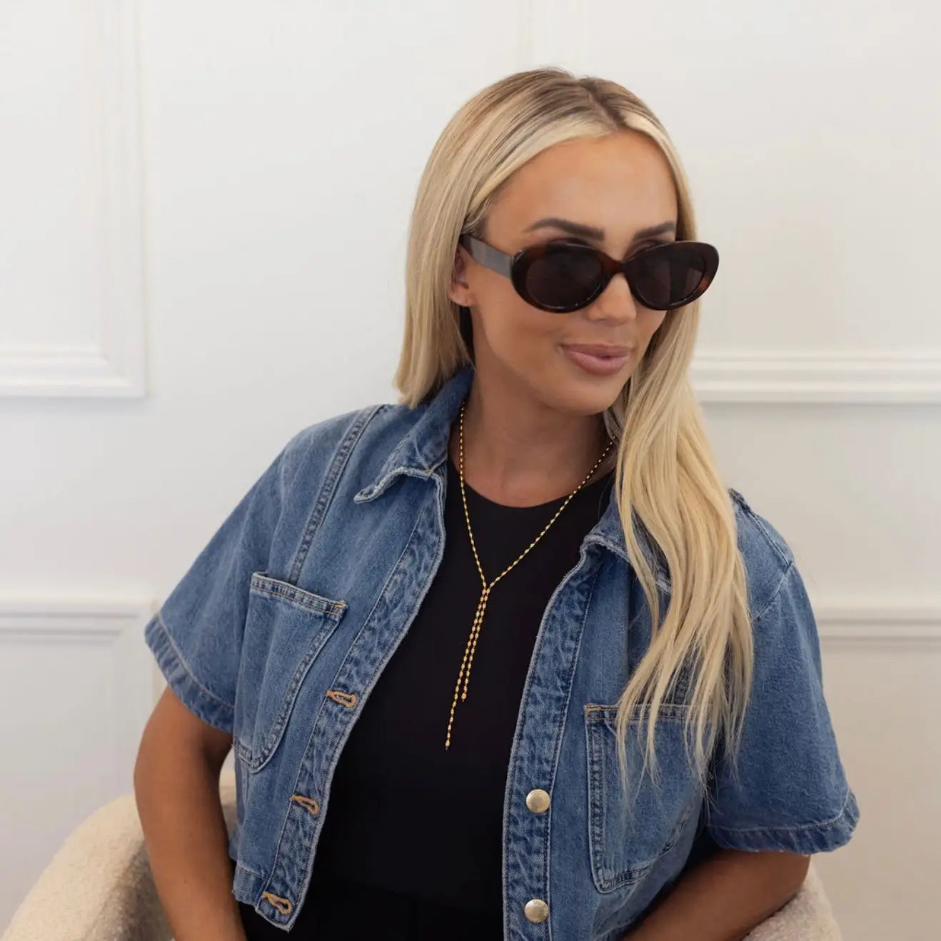 The Chloe Necklace from Chansuttpearls is a Y-Neck/Lariat Necklace that is water-resistant. It's designed to be 16-18 inches in length.