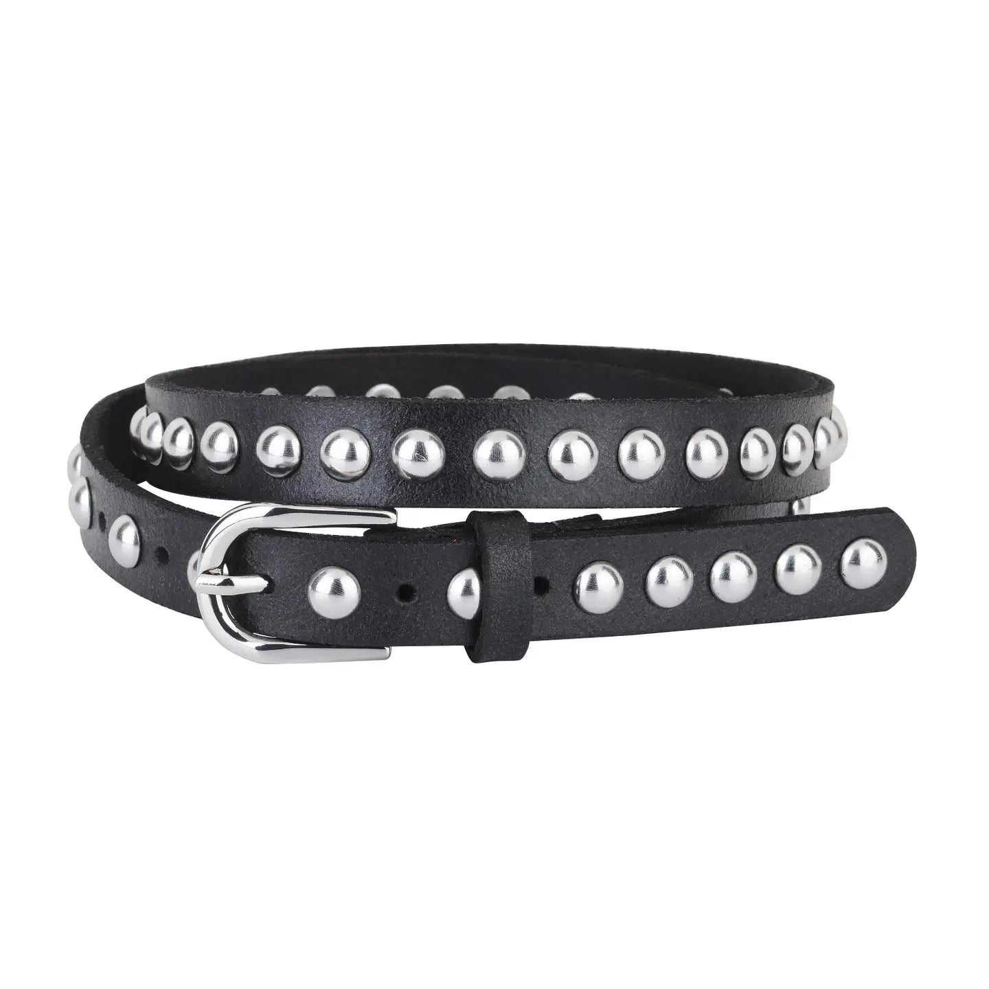 Add an edgy yet high-fashion twist to your wardrobe with the Skinny Punk Rock Studded Leather Belt. Crafted from durable leather and adorned with bold metal studs, this slim belt channels a rebellious vibe with a luxe, elevated feel reminiscent of Khaite or Alaïa. Perfect for adding a punk rock edge to jeans, skirts, or dresses, it effortlessly blends street style with high-fashion sophistication.