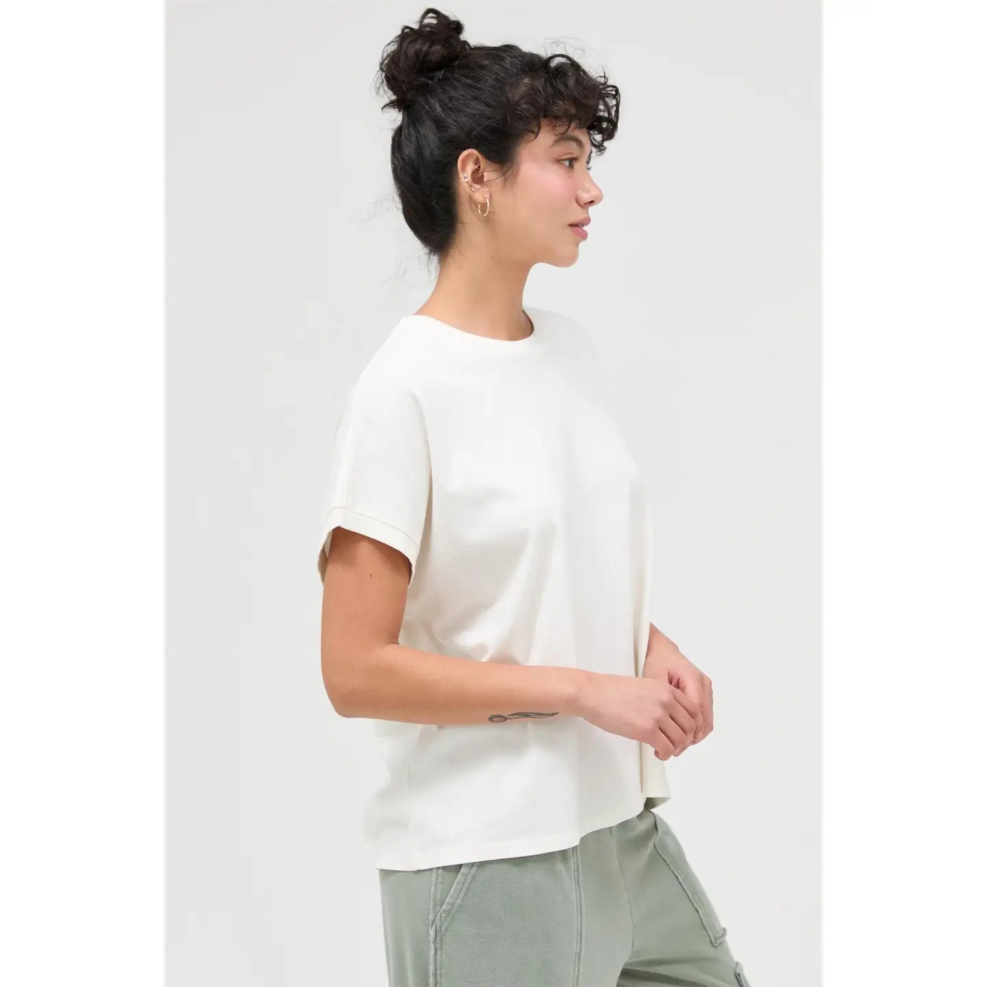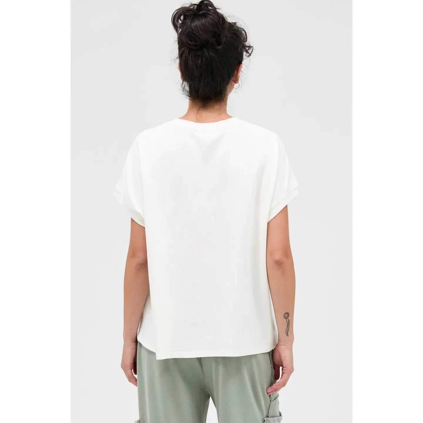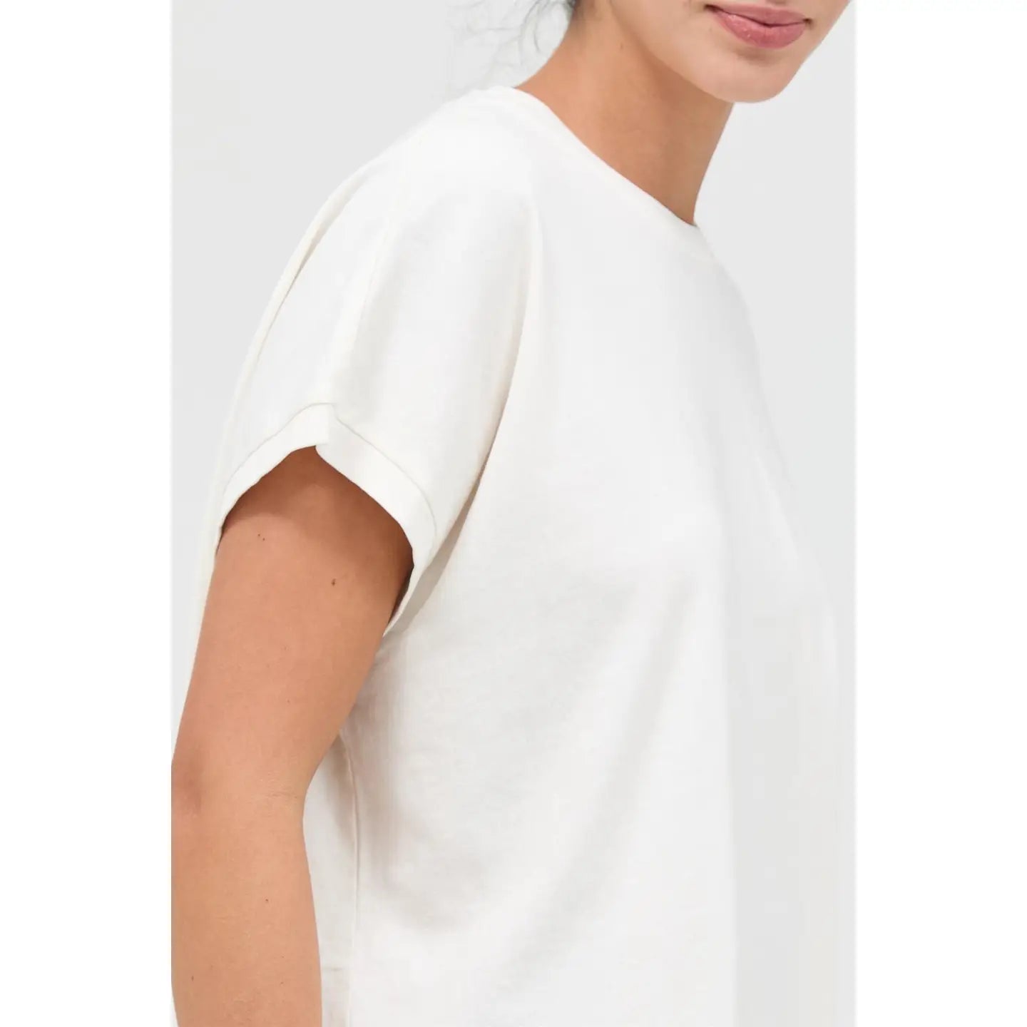 This essential tee features a classic crew neckline with distinctly shaped capped sleeves. The garment is cut in a comfortable, relaxed, slightly boxy fit. A unique mineral wash finish gives the fabric an authentic worn-in texture and faded vintage look. Pair with denim shorts and sneakers for a casual, effortless outfit.