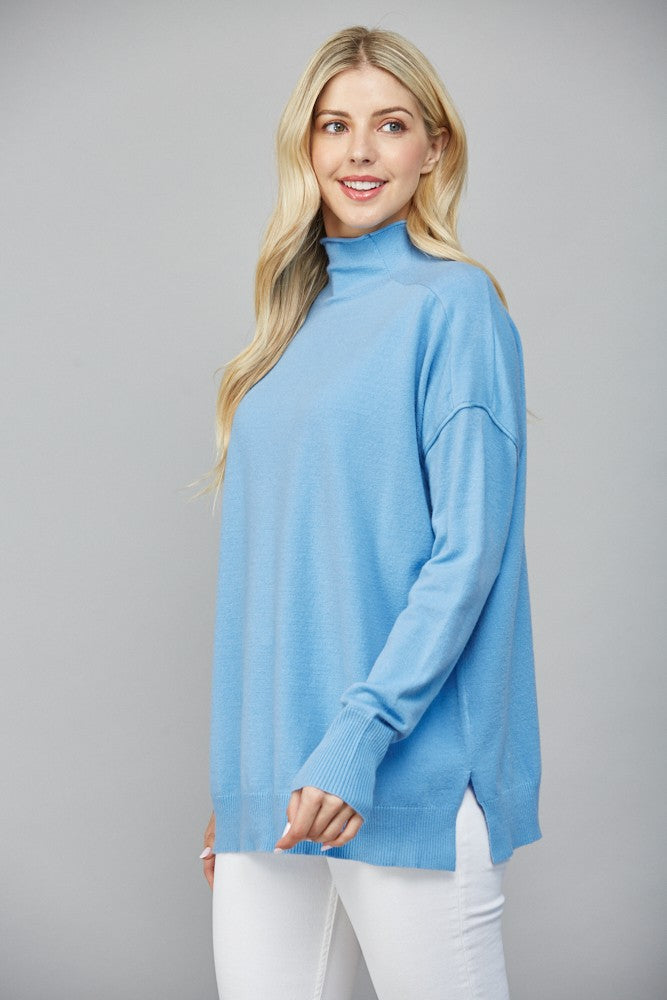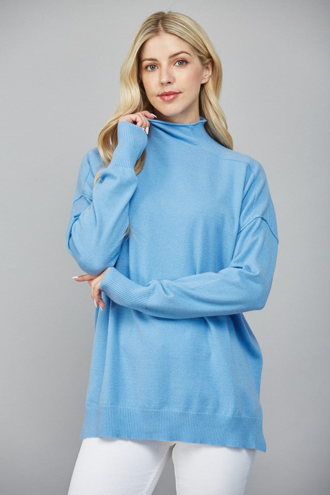 ROLLED RAW EDGE HIGH-NECK SWEATER