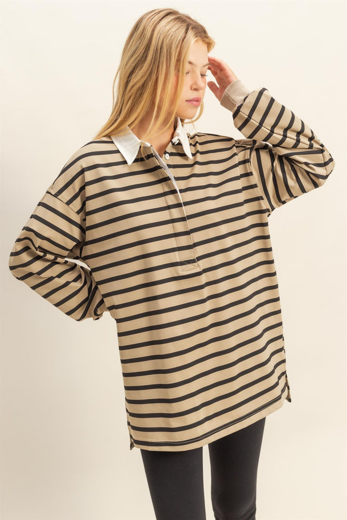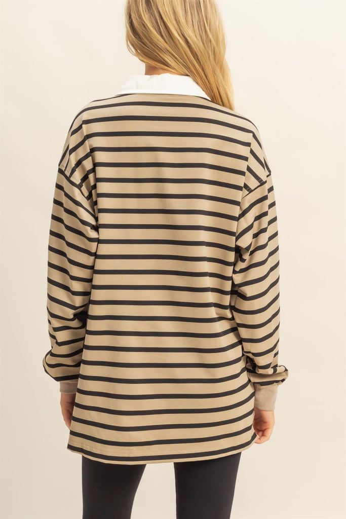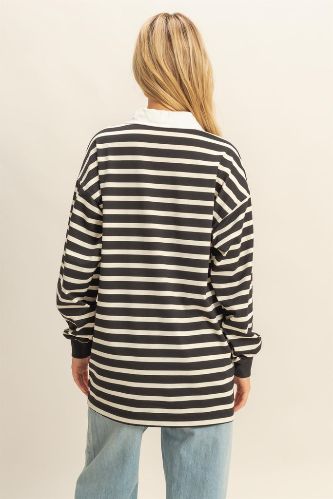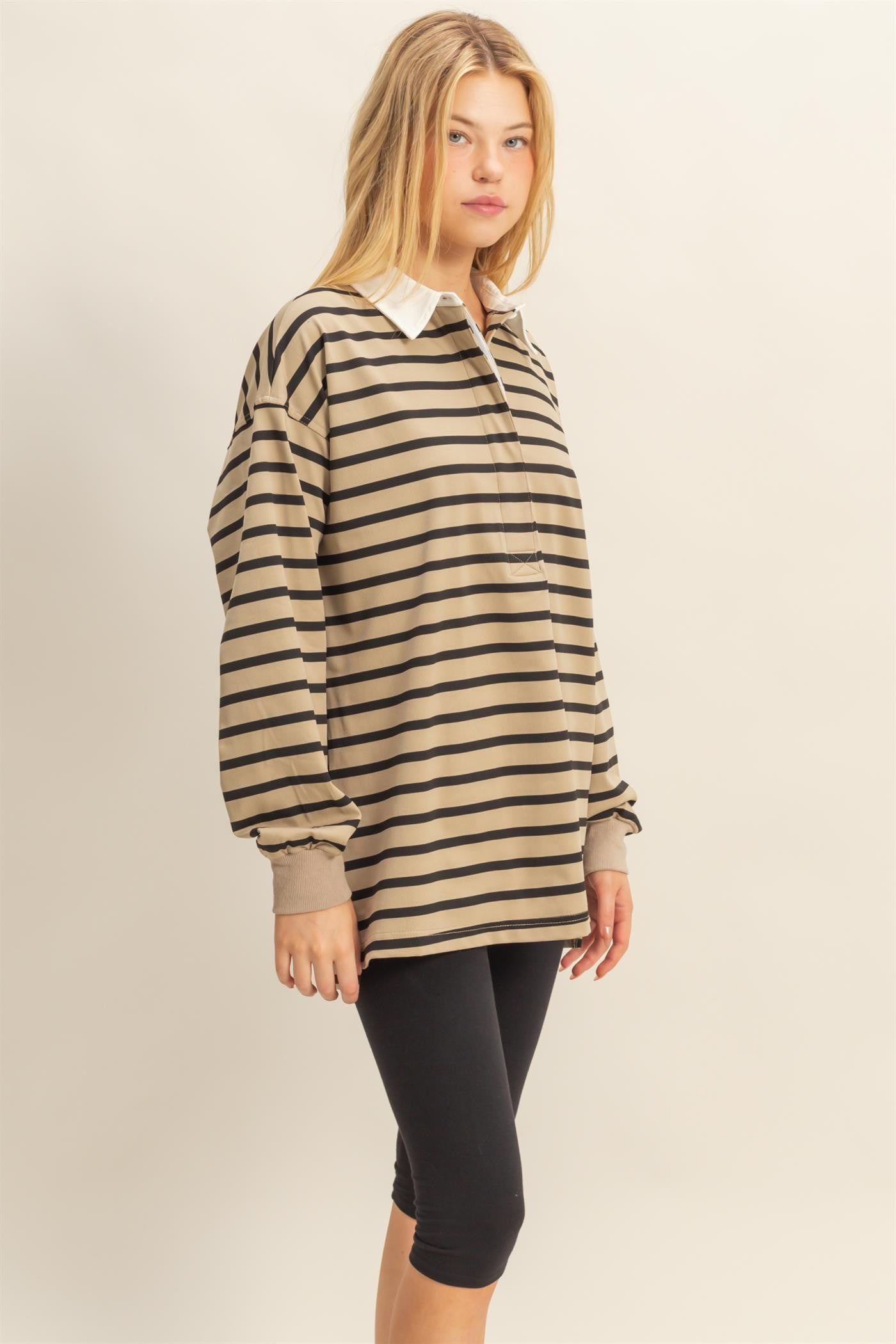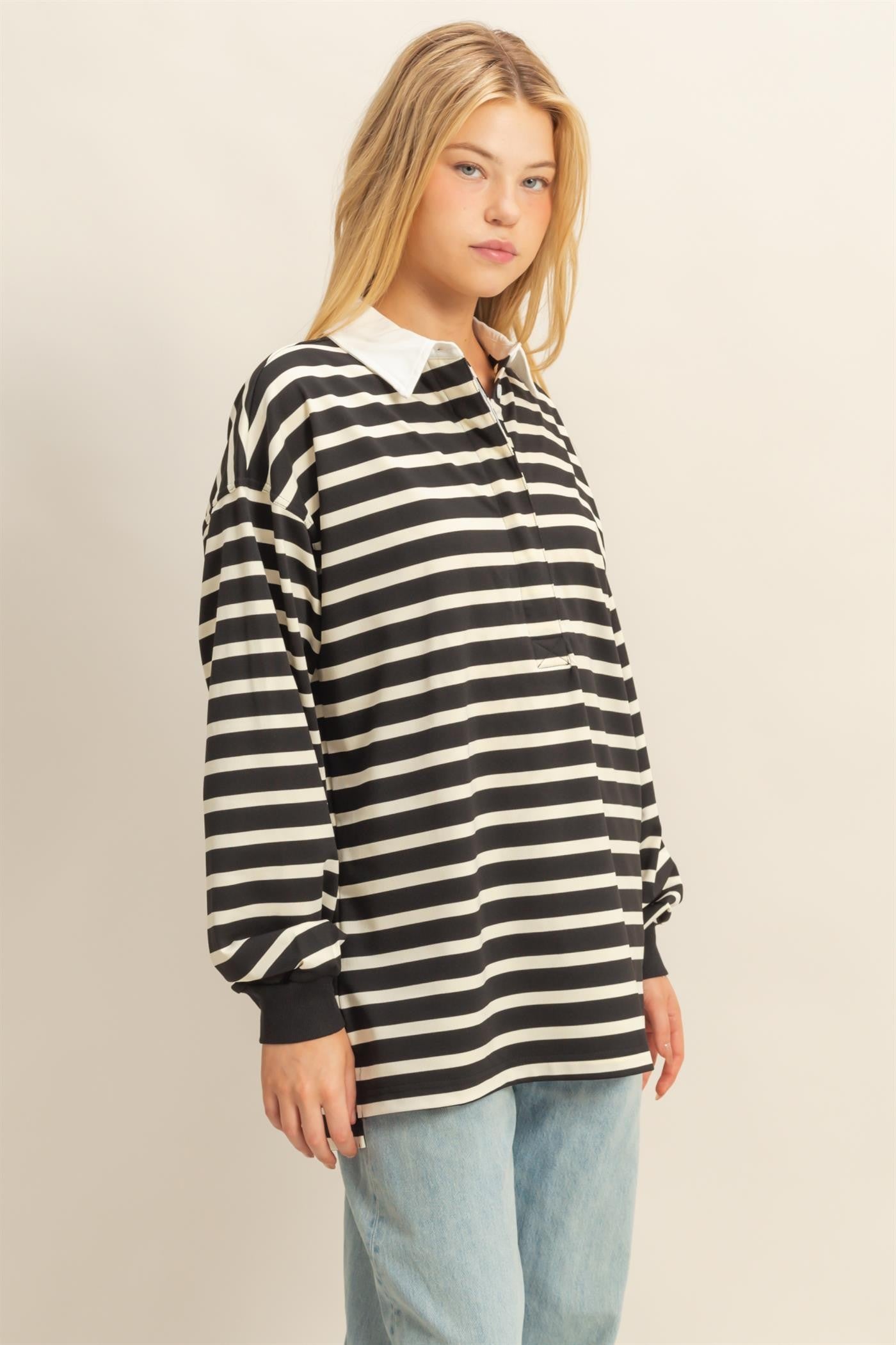 Elevate Your Casual Repertoire With This Refined Rugby Polo Shirt, Boasting Classic Horizontal Stripes And A Contrasting Collar For A Sharp Look. This Shirt Features A Regular Fit, Promoting Both Comfort And Style, Making It Ideal For Versatile Wardrobe Combinations. Perfect For A Weekend Outing Or A Smart-Casual Event, Its Timeless Design Pairs Seamlessly With Trousers Or Jeans. Model Is 5' 7" Tall, 32" Chest, 25" Waist, 34" Hips And Wearing A Size Small