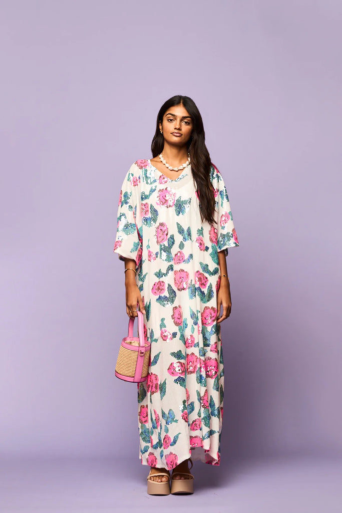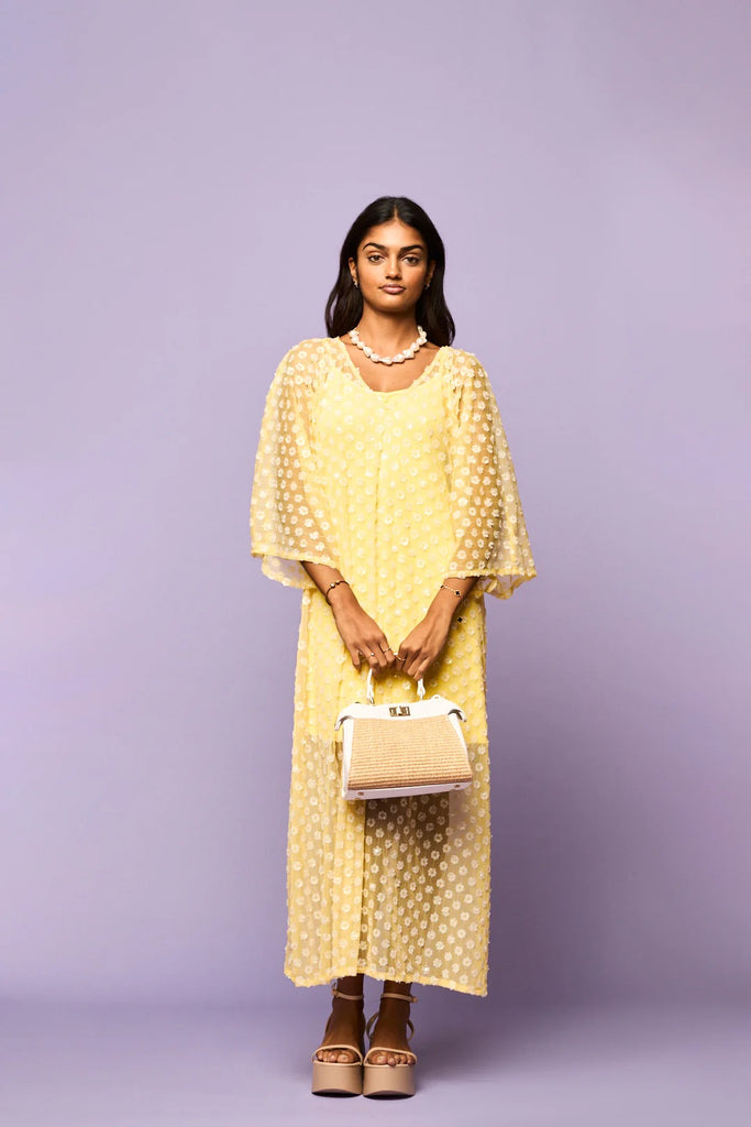 FLOWER TEXTURE DRESS WITH RIBBON SHOULDER TIES