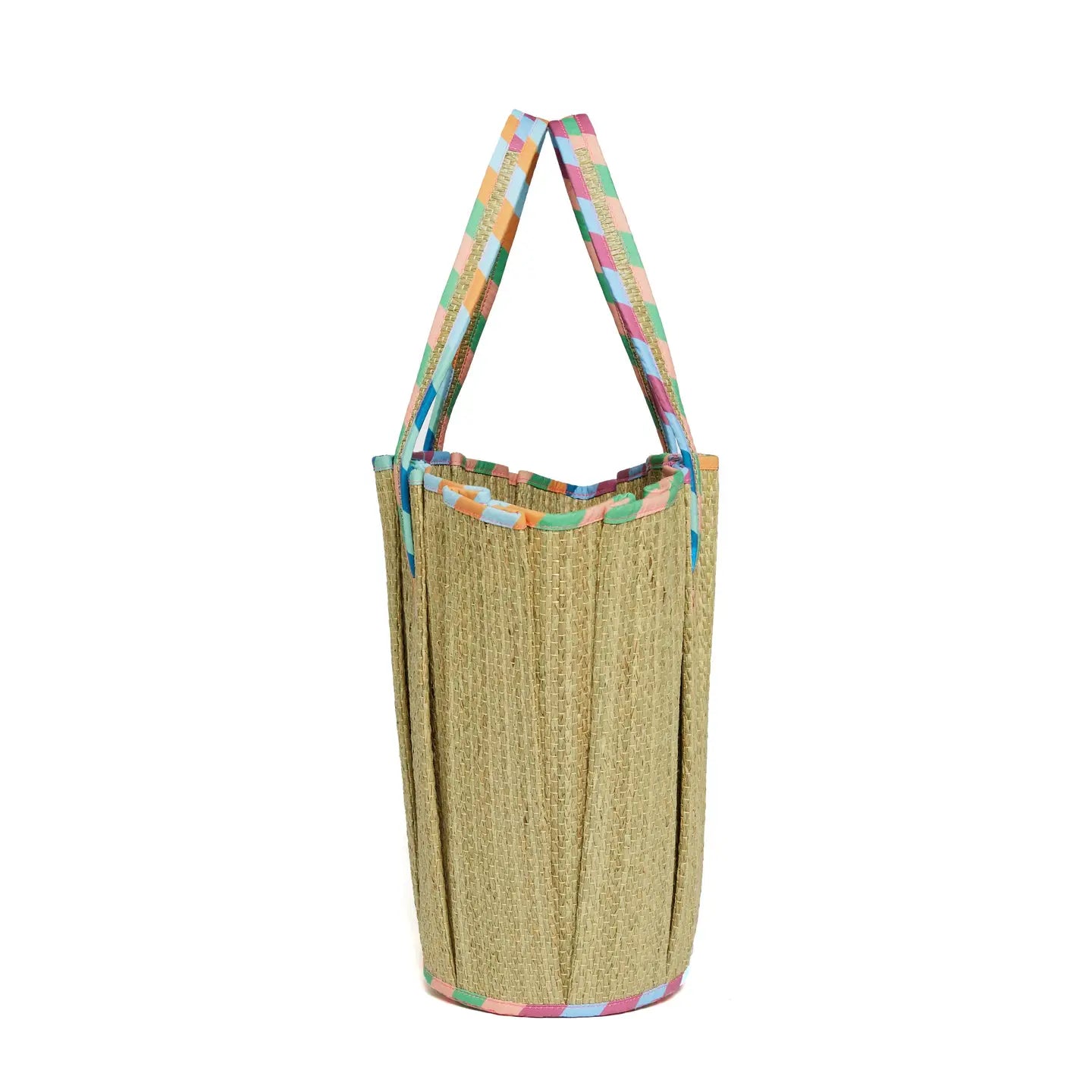 The Confetti Coast Midi Tropez Tote by Lorna Murray is a unique blend of effortless glamour and coastal bohemian style. This tote bag is the ideal accessory for the global traveler and sun-seeker. Handcrafted ethically by artisans in South East Asia, it's made with 100% natural fibers for minimal environmental impact. It's more than just a bag, it's a nod to traditional textiles in a contemporary context. Carry your essentials in style while making a positive impact on the environment.
