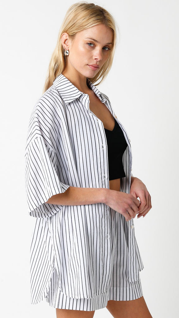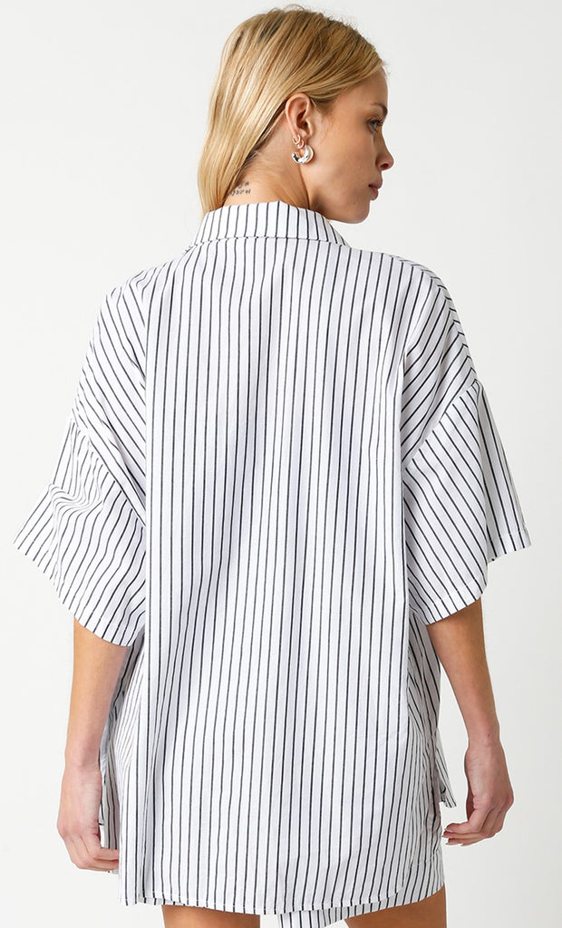 Our Ronie Top features a 1/2 sleeve and a button down Woven