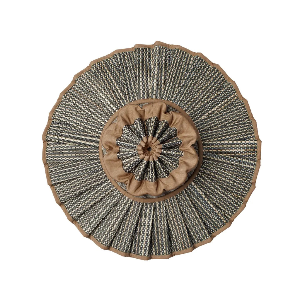 Nara features porcelain-white and ink-black alternating thread colours woven through natural and black hand-dyed fibre base, with a warm-brown fabric trimming. Lorna Murray sun hats combine style and sun-safety. Our grass fibre woven material is certified UPF 50+, protecting your precious skin from the elements. Intentionally created for the modern lifestyle, our sun hats can be easily folded, making them compact for travel, perfect for wherever life takes you. Nara is an exclusive collaboration between Lorna Murray x Oriént Millinery.