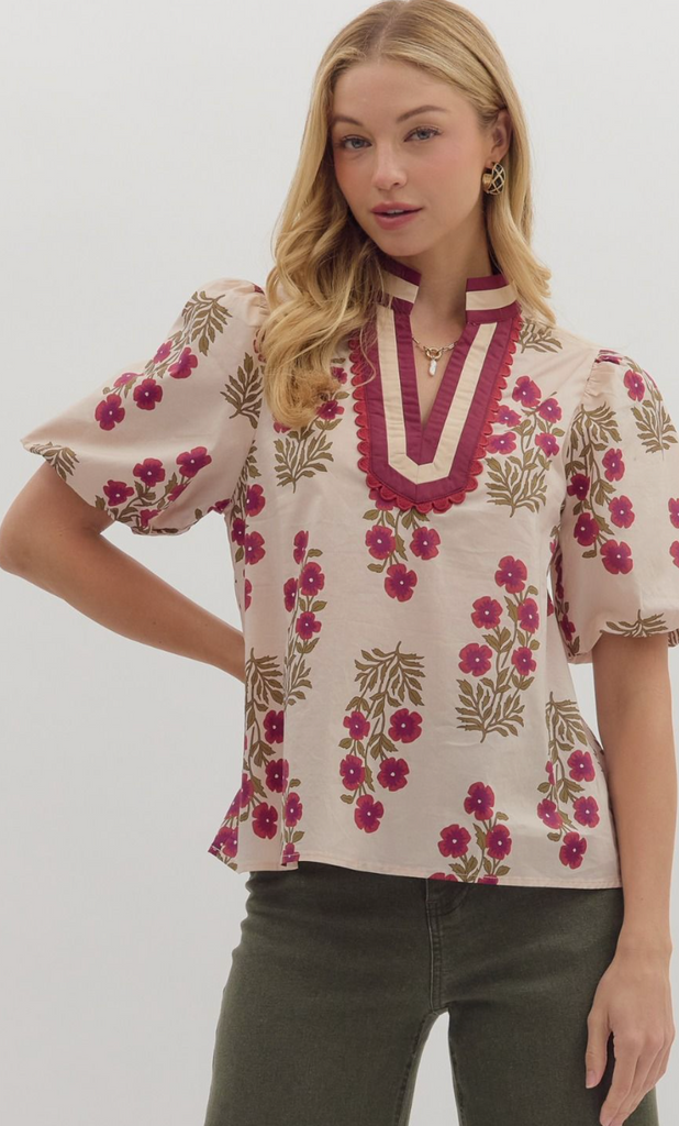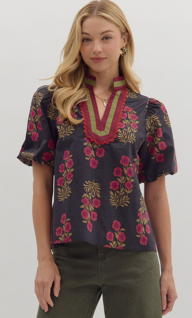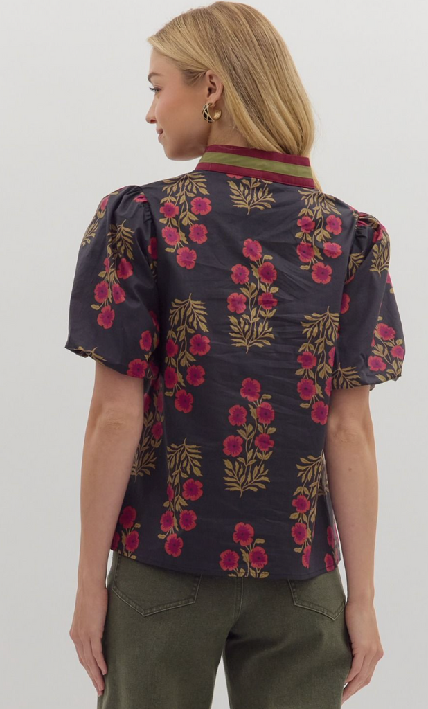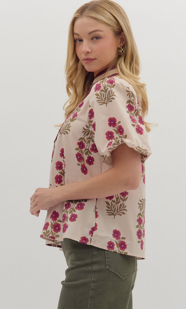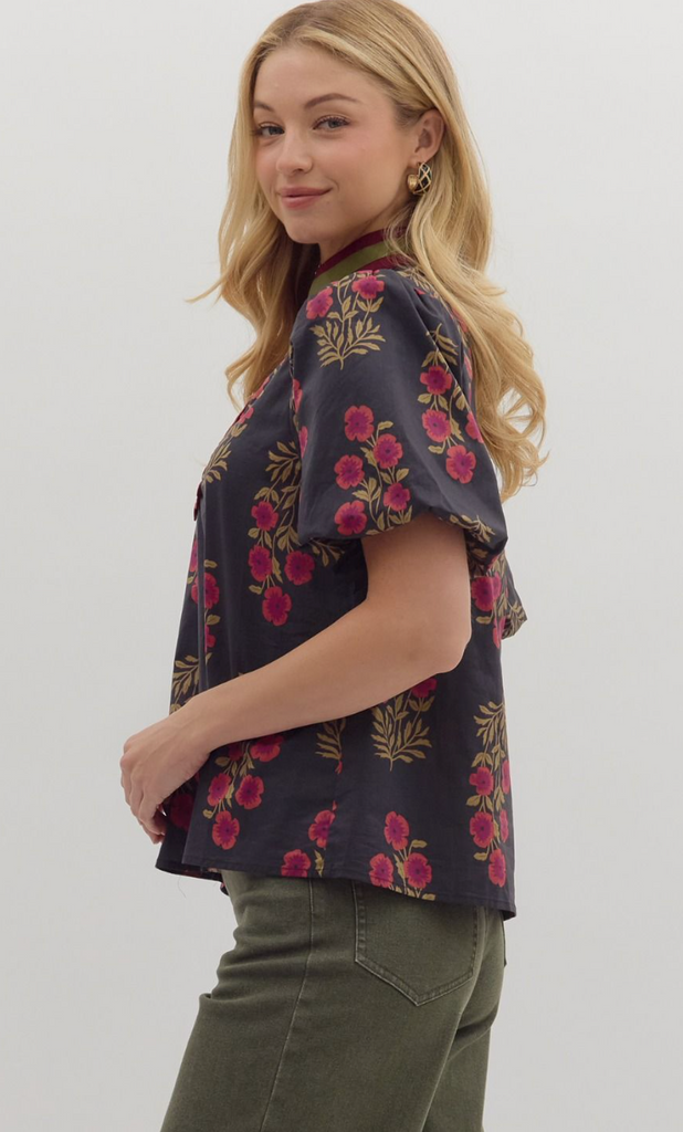 Floral Print Bubble Sleeve Top